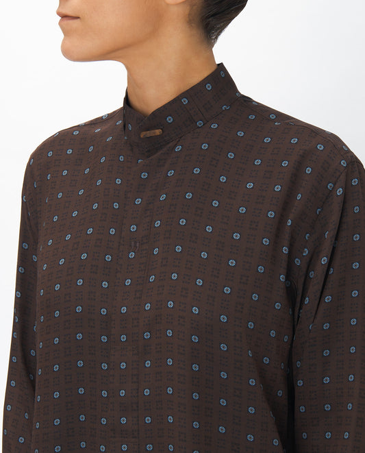 BROWN SILK PRINT HAMPTONS LONG SHIRT