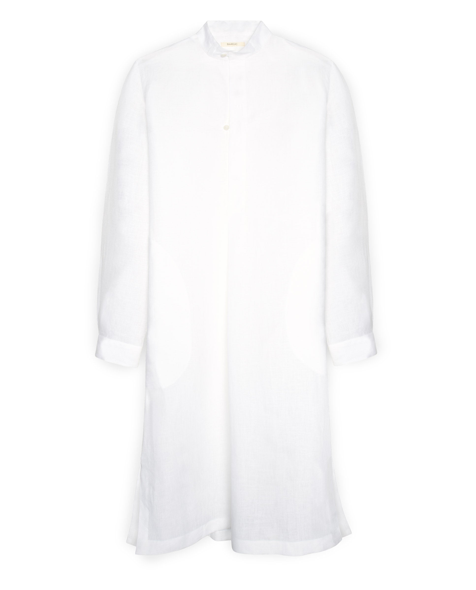 The Kurta is a traditional long shirt worn in India, Sri Lanka and other southeastern Asian places. It is midi lenght, below the knee, so that it allows to hide two big side pockets. The Ceylon Kurta has a front pleat, which creates a flow for the fluid fabrics in which they are made while also avoiding showing the curves of the stomach. European tailoring and Baruc’s signature details: the patented collar that suits both western and eastern styles, the hidden buttons, the cuffs able to be closed with buttons or cufflinks, makes this piece especially appreciated by both men and women of any place of any status.